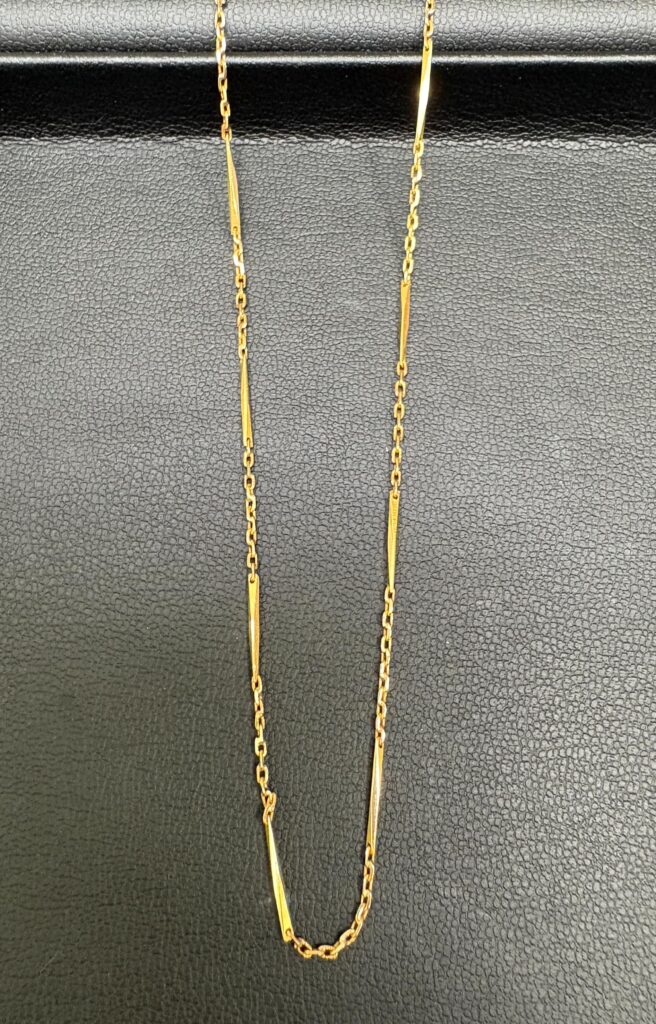 - 💖 デザインの評価(デザインチェーン): 棒状のパーツを組み合わせたようなスタイリッシュなチェーンは、デザイン性も評価の対象となり、重量に加えてプレミアがつく場合もあります。