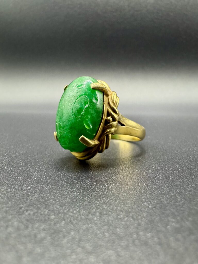 お持ち込みいただいたのは、存在感抜群の翡翠を贅沢に使用したリング。