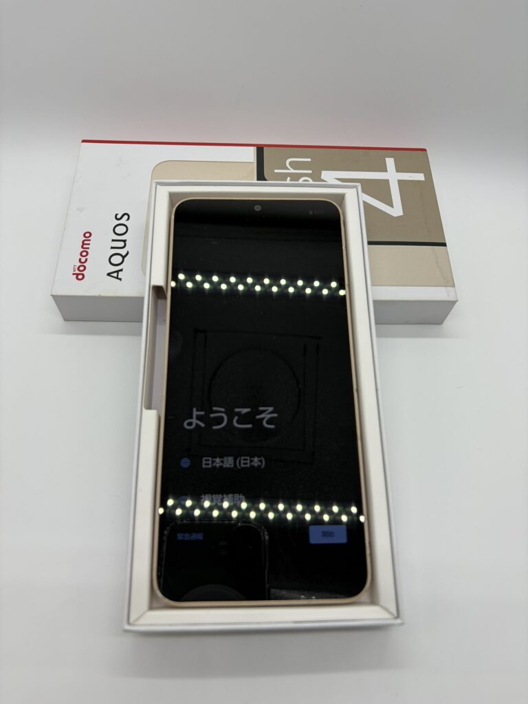 今回ご紹介するのは、幅広い層から支持されているSHARPのスマートフォン、AQUOS wish4 です。お客様が機種変更をされて不要になったとのことでお持ち込みいただきました。