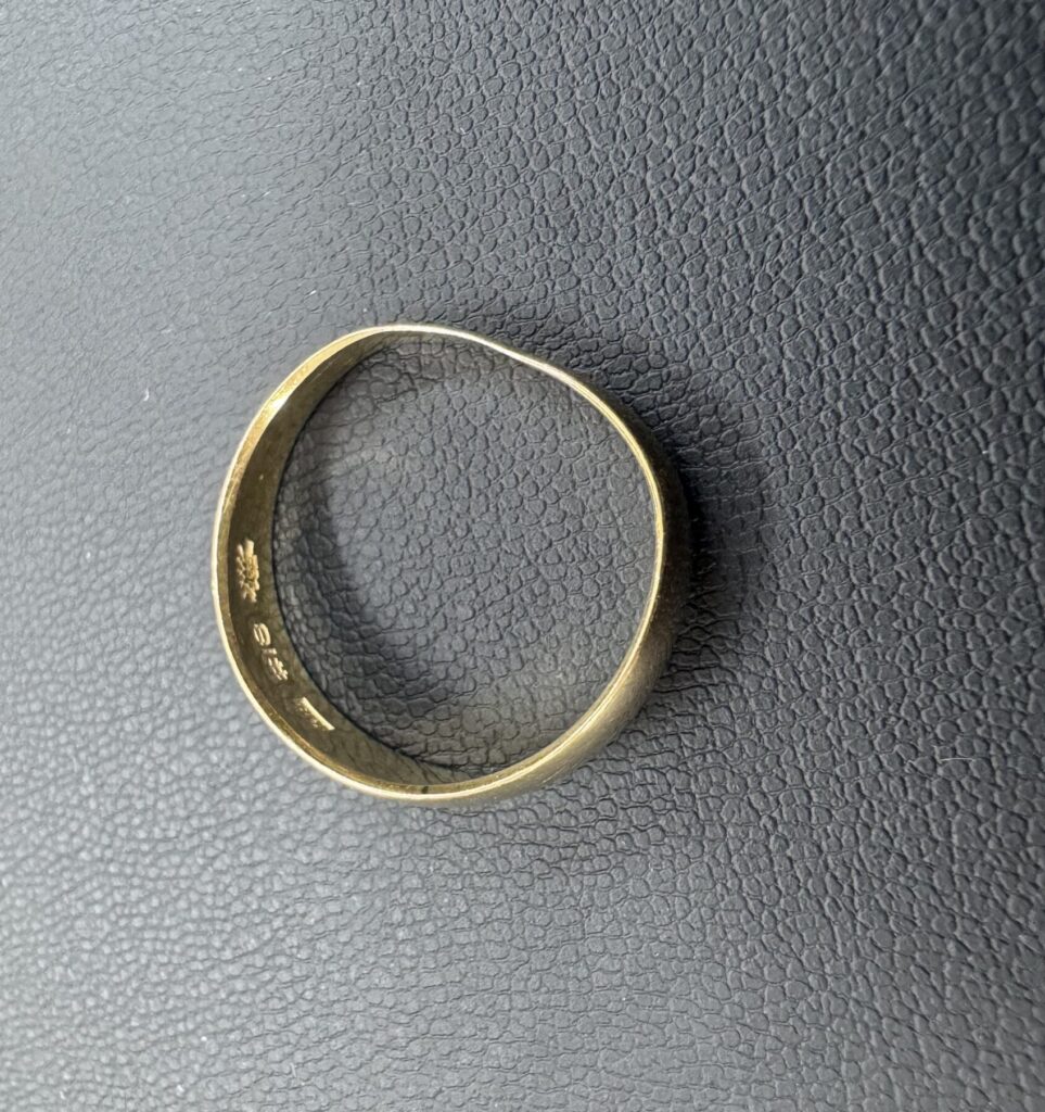 K18(18金)の刻印が明確に確認できる幅広タイプの金リングです。