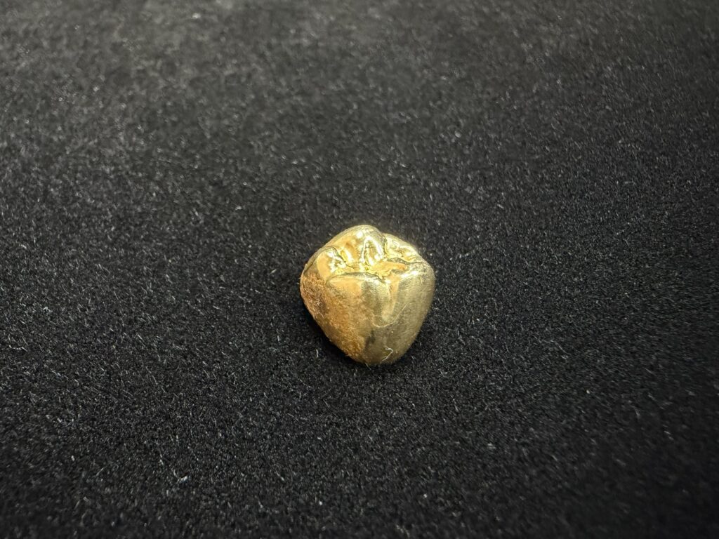歯科治療で使われる金歯は、加工しやすいように他の金属が混ざっていることが多いですが、金としての価値はしっかりと残っています。特に現在は歴史的な金相場の高騰が続いておりますので、こうした小さなお品物でも驚くような査定額になることが多々ございます。