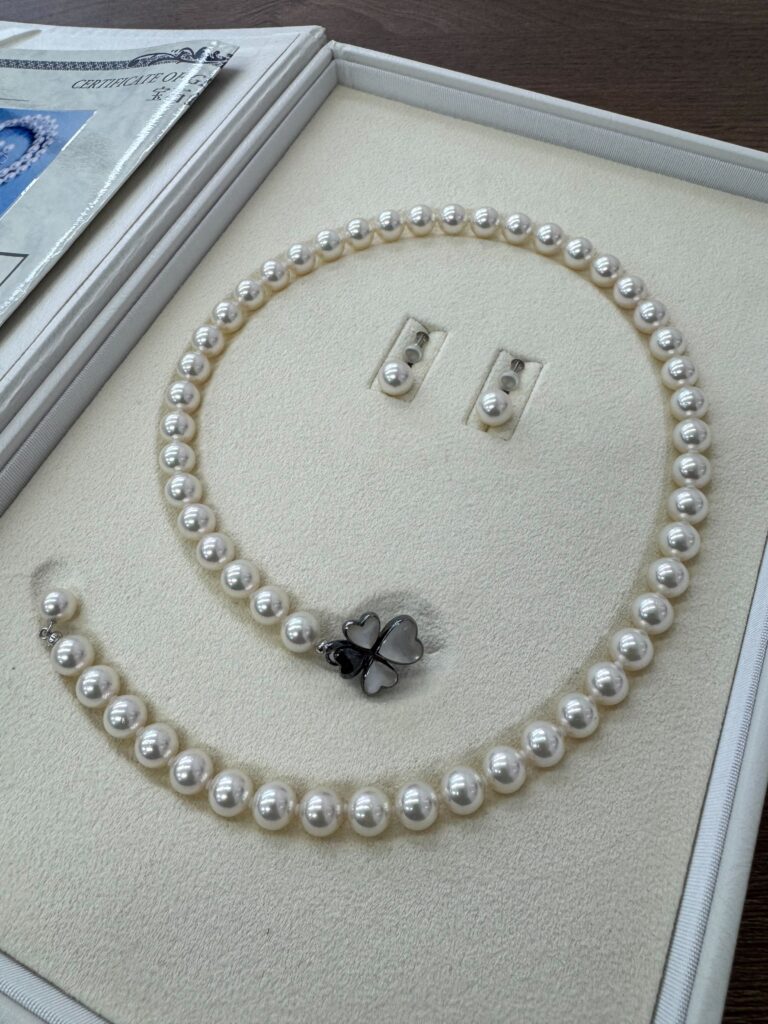 今回は、鑑別書付きのアコヤ真珠ネックレスとイヤリングのセットをお買取りさせていただきました。