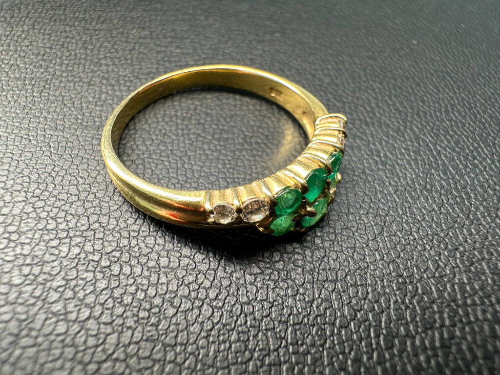 深みのあるグリーンが印象的なエメラルドを主役に、周囲にダイヤモンドをあしらった上品なリングをお買取りいたしました💍