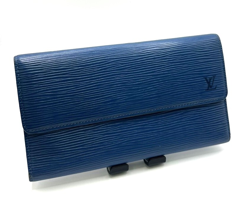 落ち着いたブルーカラーが印象的なこちらのお品物は、シンプルながらも上品な雰囲気を持つエピレザー仕様。実用性とデザイン性を兼ね備えた、長年支持されているモデルです。