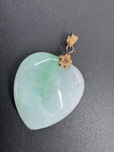 【銀座屋 八幡東店】K14留め金付き 翡翠(ヒスイ)ハート型ネックレストップを高価買取|北九州市・八幡東区