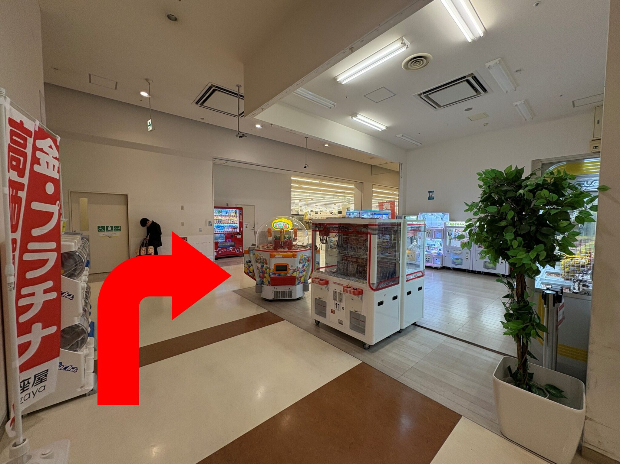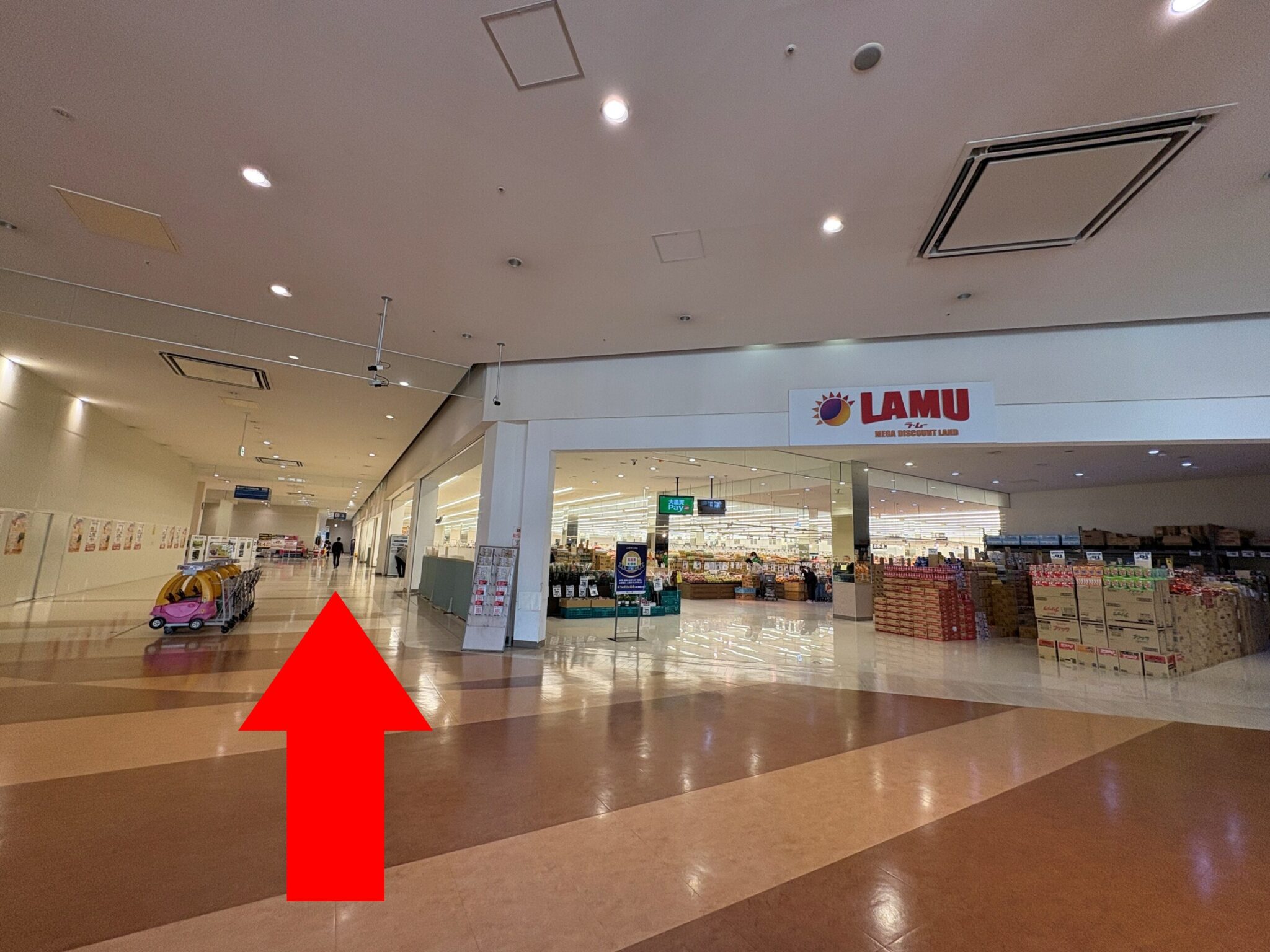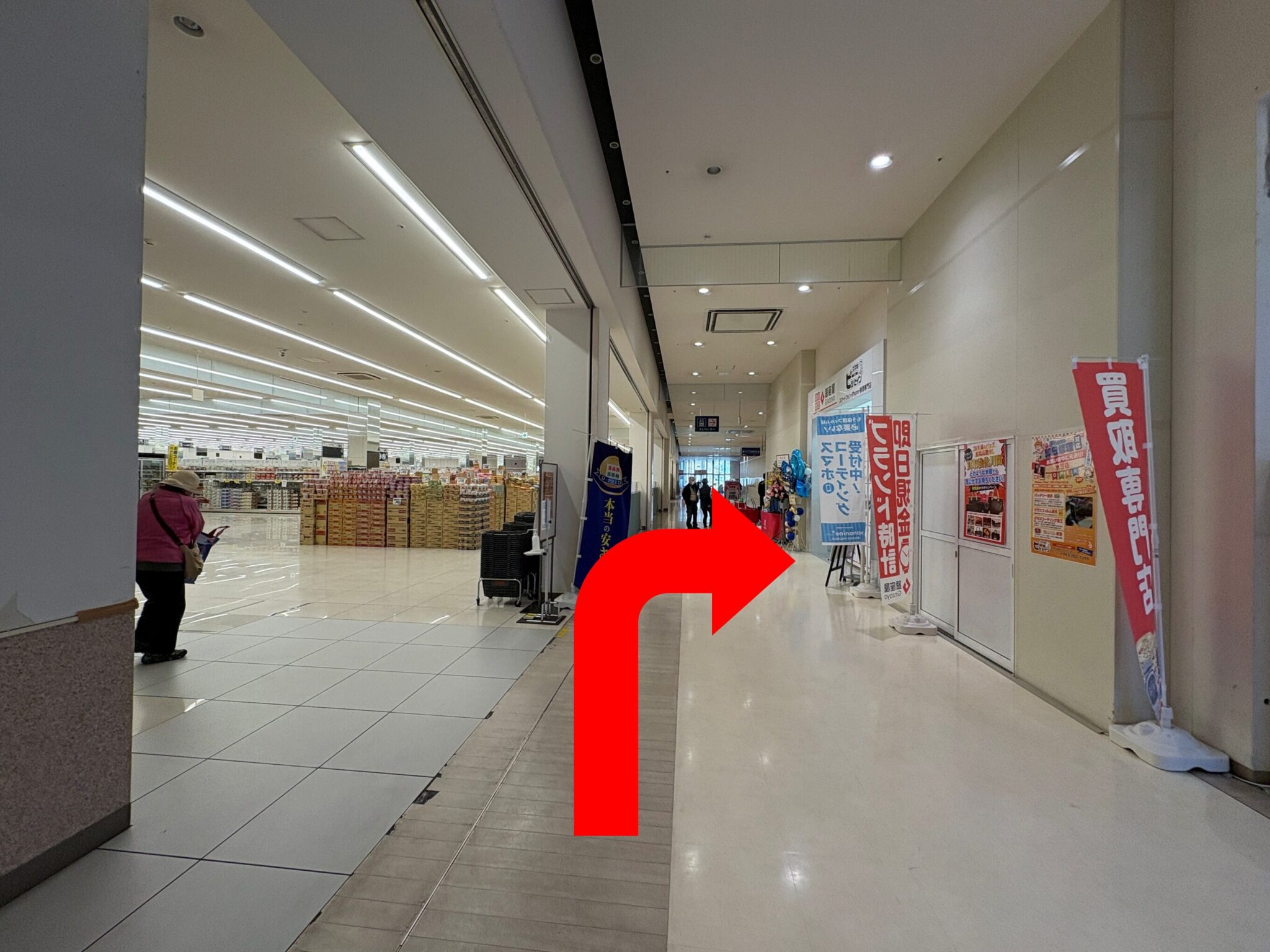 ゲームコーナー横を曲がり、店内スーパー方面へ進みます。
